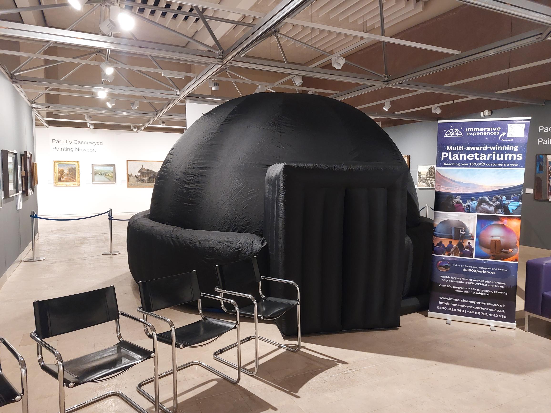 Looking for something different this half term? Join us at Newport Museum & Art Gallery for a free 360° pop-up planetarium show. Travel back in time and fly with dinosaurs, explore climate driven phenomena occurring on planet Earth, hunt for life in our solar system and beyond or immerse yourself in an astronomer guided tour of the night sky.
