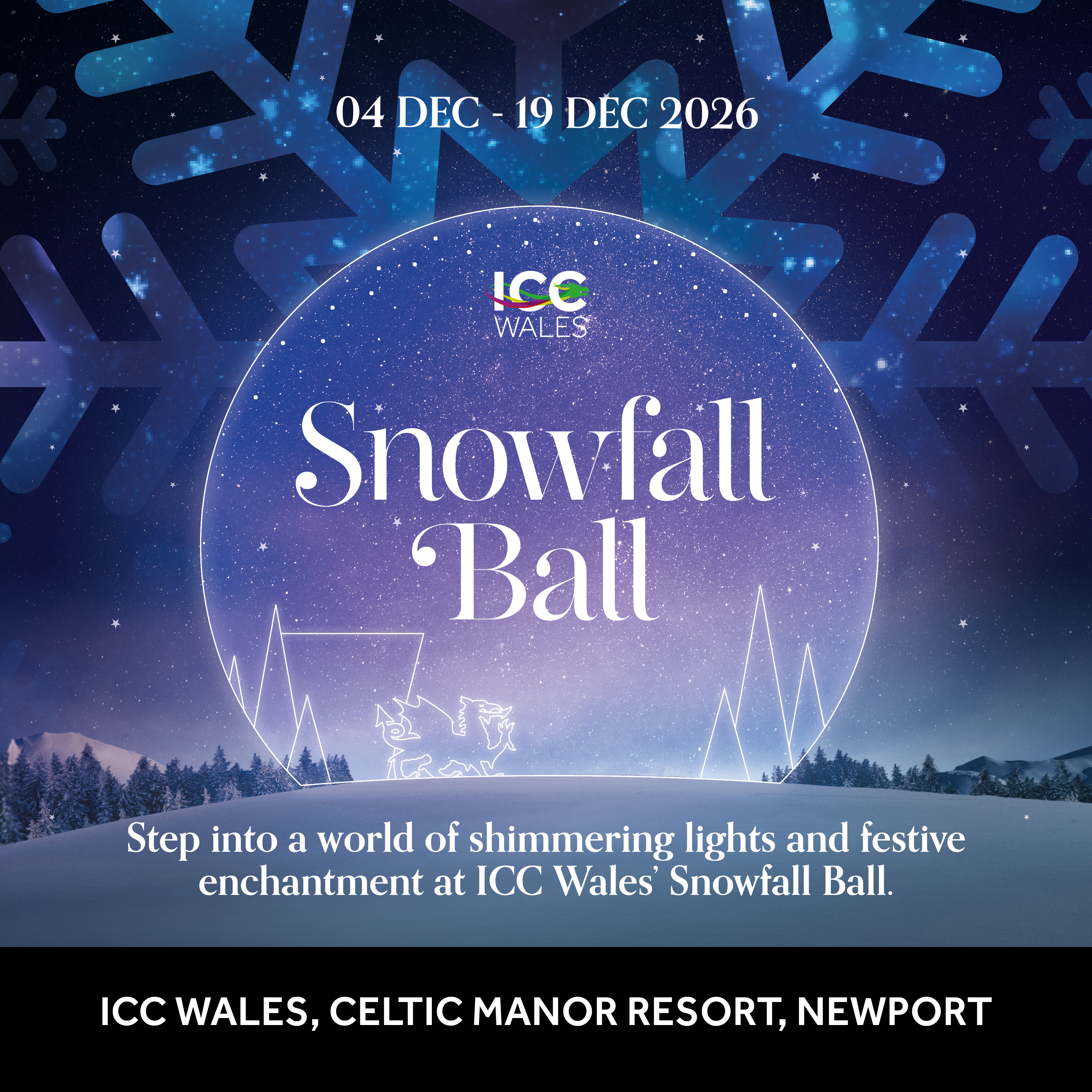 Step into a world of shimmering lights and festive enchantment at the ICC Wales Snowfall Ball.